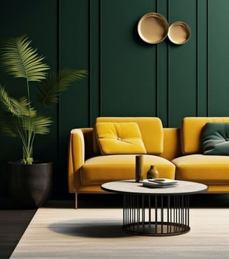 في غرف المعيشة، يمكن استخدام ألوان دافئة، مثل الأصفر والأحمر ولون التوت البري (الأحمر القاتم).